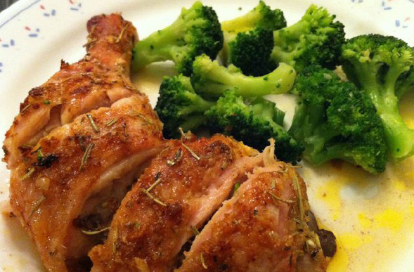 4. Тахианы маханд амтлагч хольцыг жигд үрж түрхэж өгөөд шарах шүүгээний тэвшинд тавина. Тахиан дээгүүр оливын тос шүршиж 200 хэм хүртэл халаасан шарах шүүгээнд 35-40 минут шарж бэлэн болгоно.